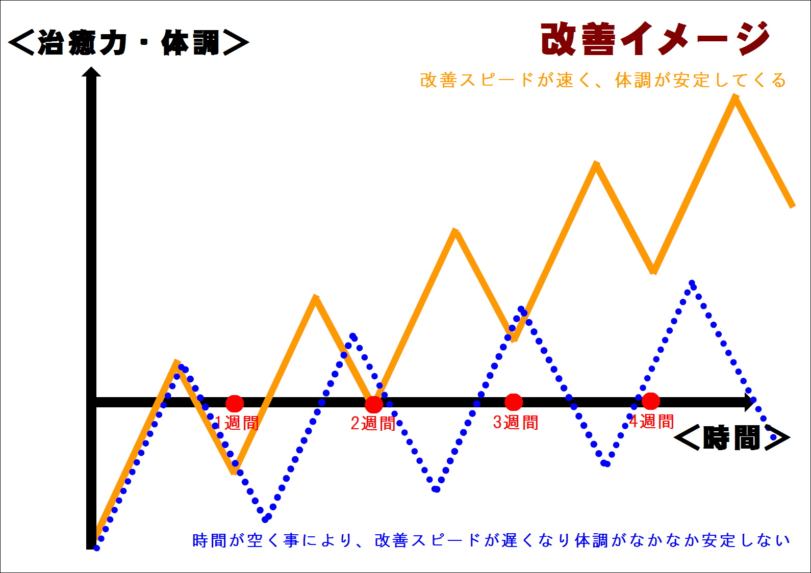 矯正間隔が長くなるという事は、改善ペースが落ちます。