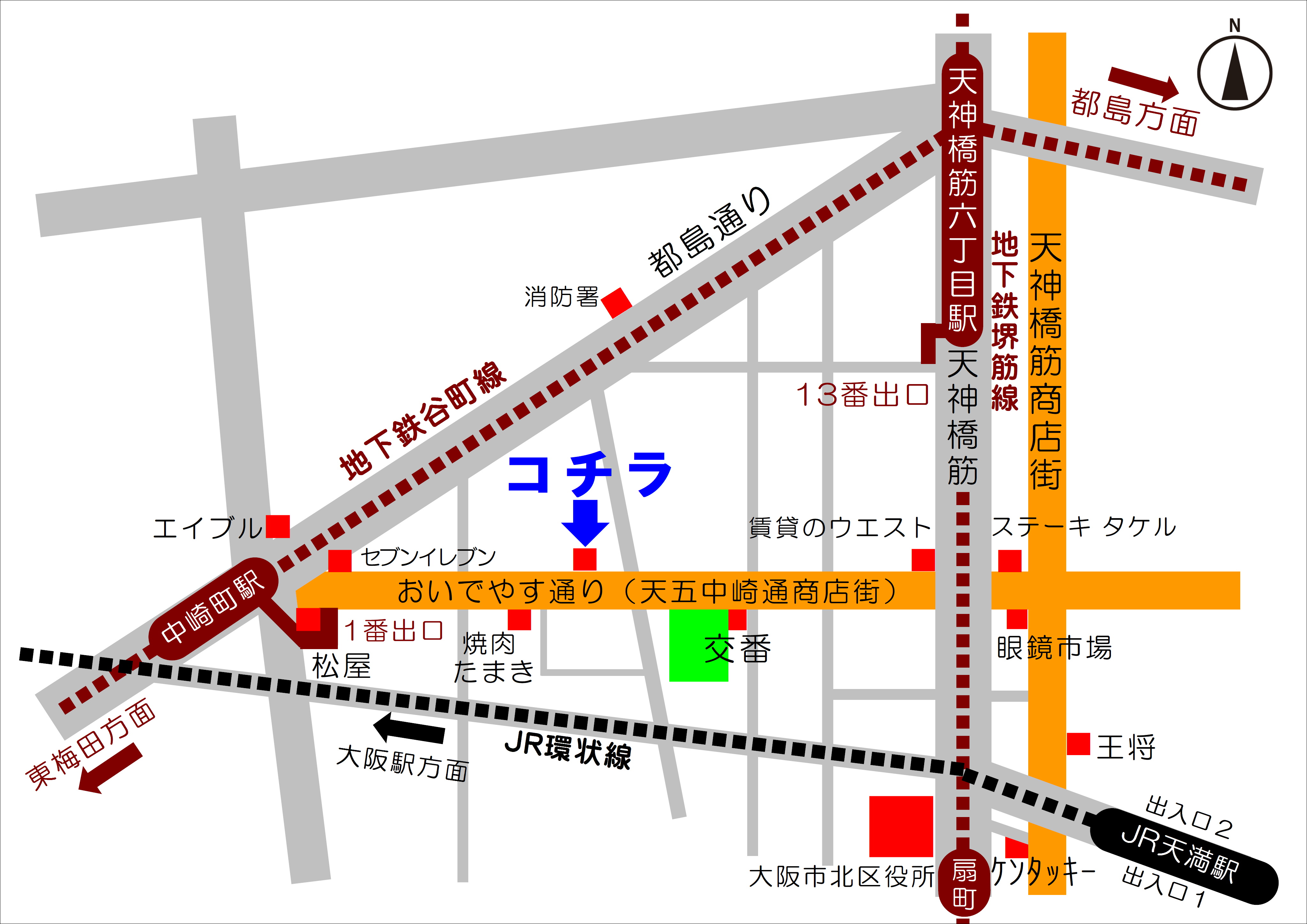 ・谷町線・堺筋線「天神橋筋6丁目」駅・大阪環状線「天満」駅から7分