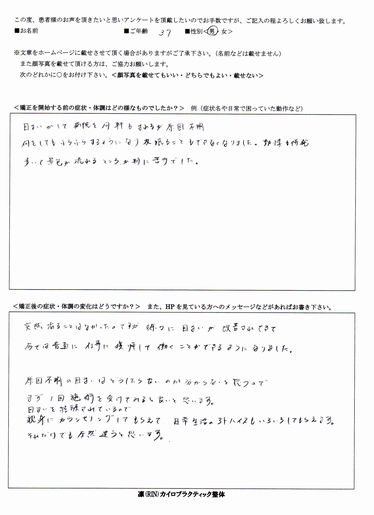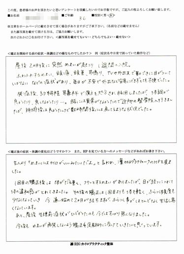 矯正後は、徐々に目眩もふらつきも少なくなりました。