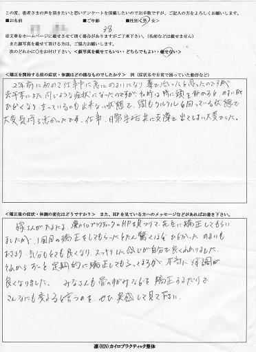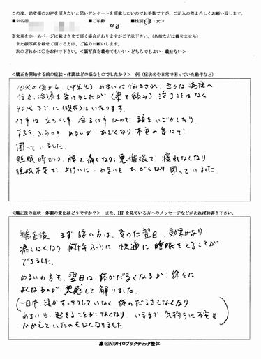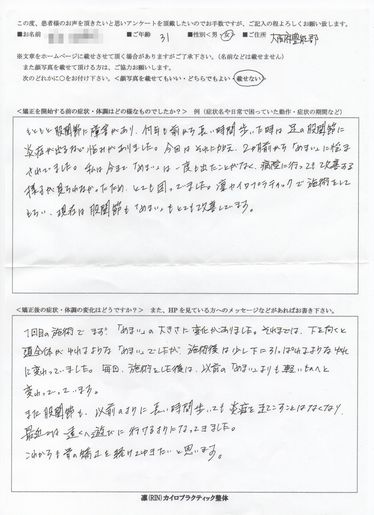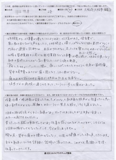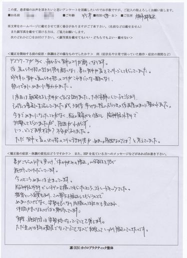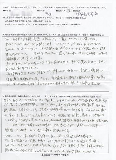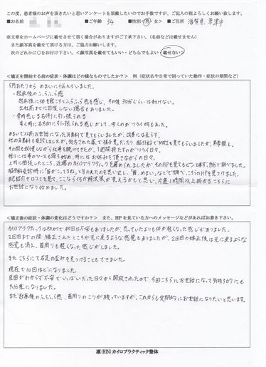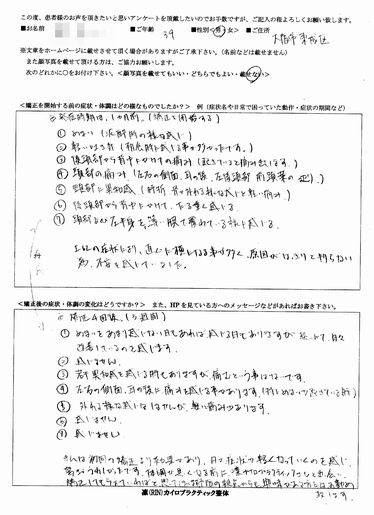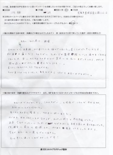 初回の矯正で、数年痛かった、右肩の痛みがなくなったことには、ビックリしました。