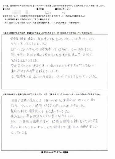 凛カイロさんは、友達に紹介されて通うようになりましたが、それまでは、整体や腰痛を予防するためのトレーニング指導を受けたり、いろんな所に通うようになりましたが、症状は快方に向かわず、悪化する一方でした。